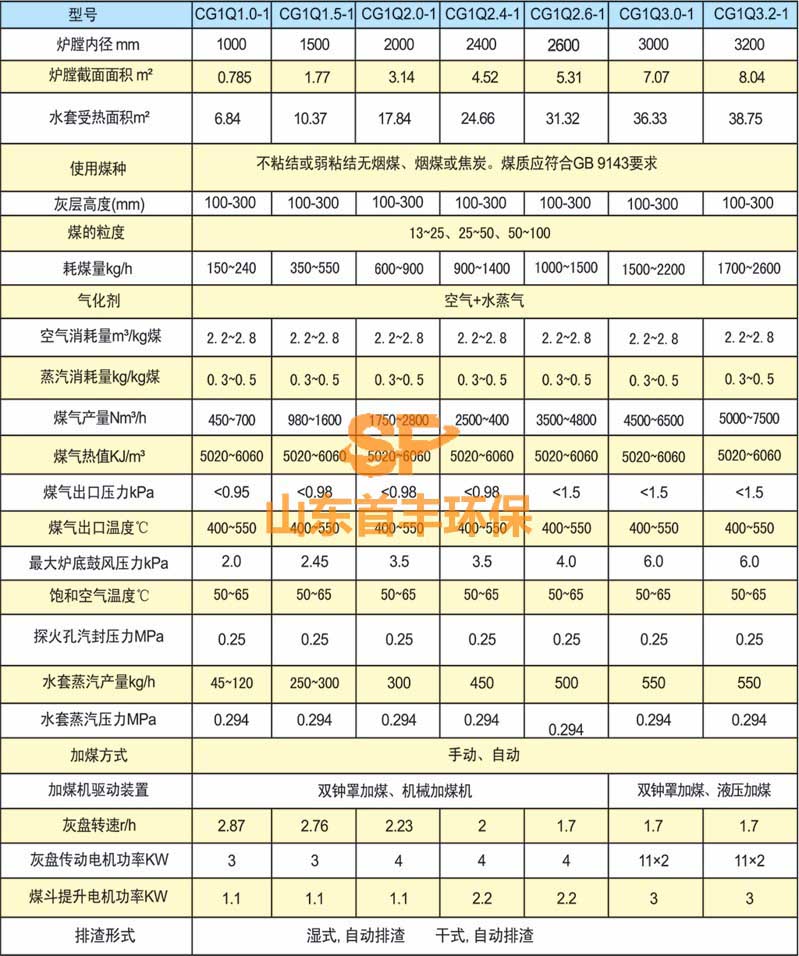 单段式煤气发生炉热煤气工艺流程,由来自鼓风机的空气与炉体自产0.294MPa的蒸汽混合成饱和空气作为气化剂,经止回阀通过煤气炉底部进入煤气炉内;块煤经过破碎、筛选,粒度25-50mm,或50-100mm,由煤提升装置,经加煤装置加入到煤气炉内;在煤气炉内产生的煤气经过重力除尘器、旋风除尘器除尘后,通过煤气管道输送至用户。
